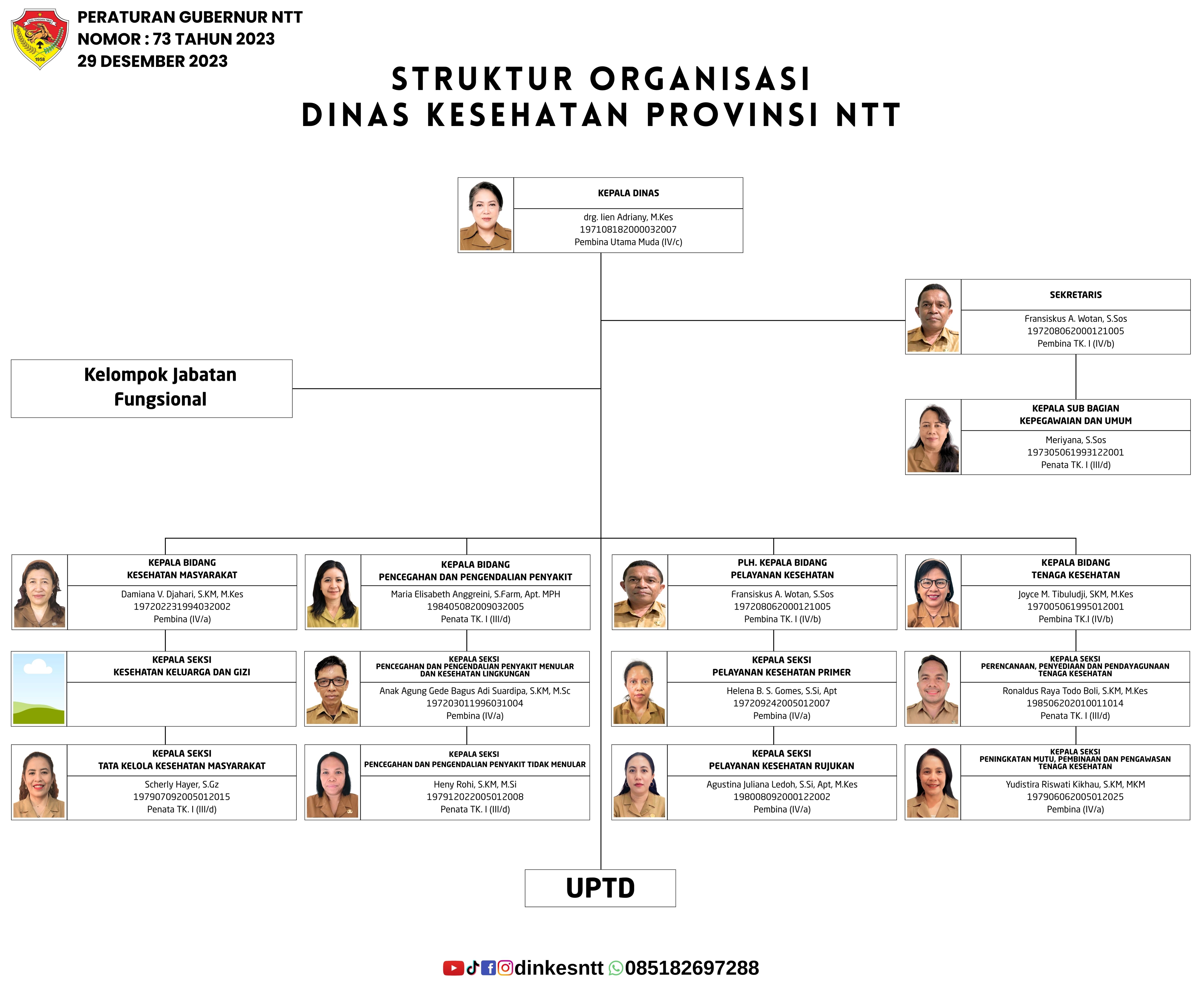 Susunan kepemimpinan dan tata kerja Dinas Kesehatan Provinsi NTT.